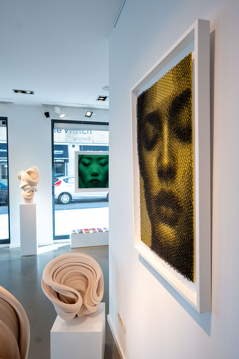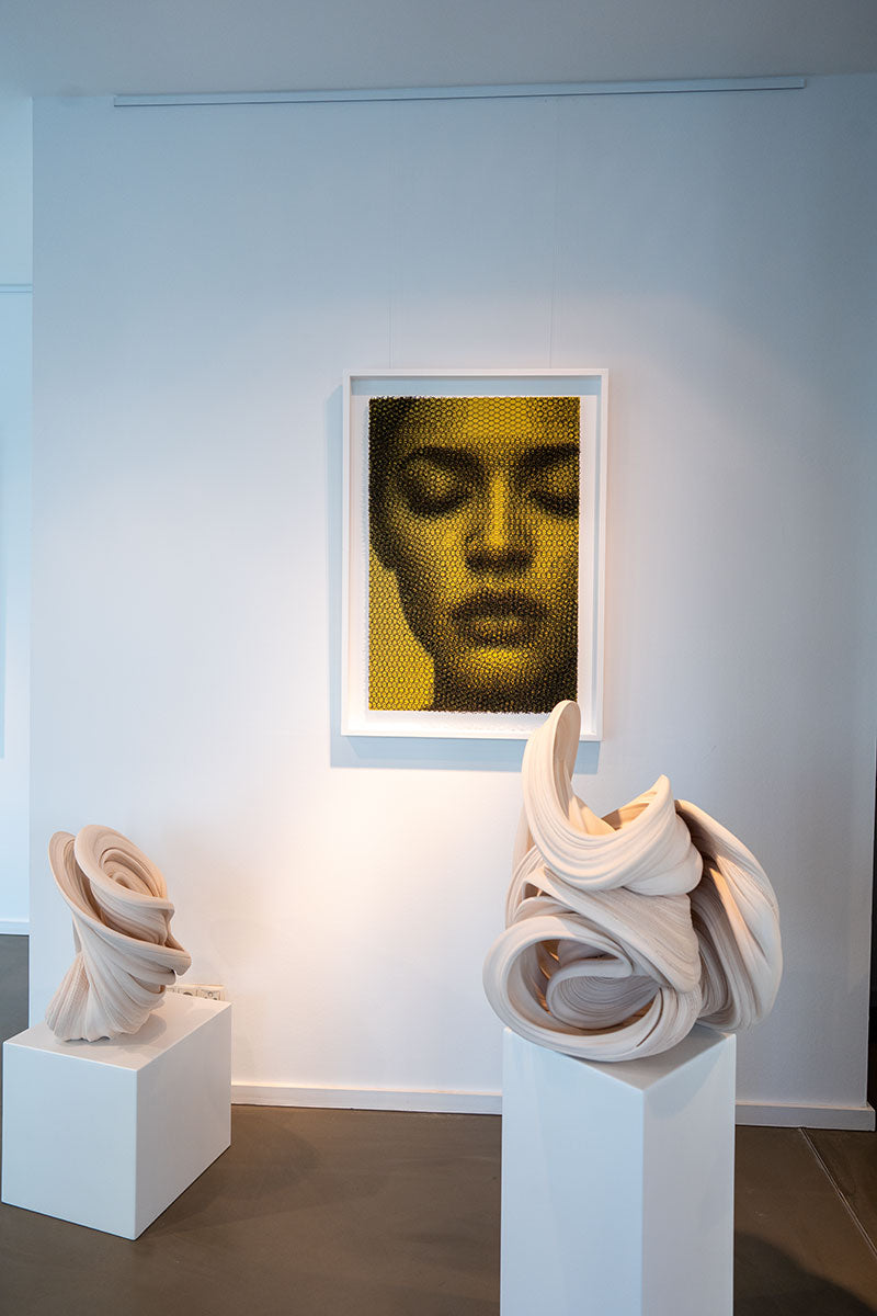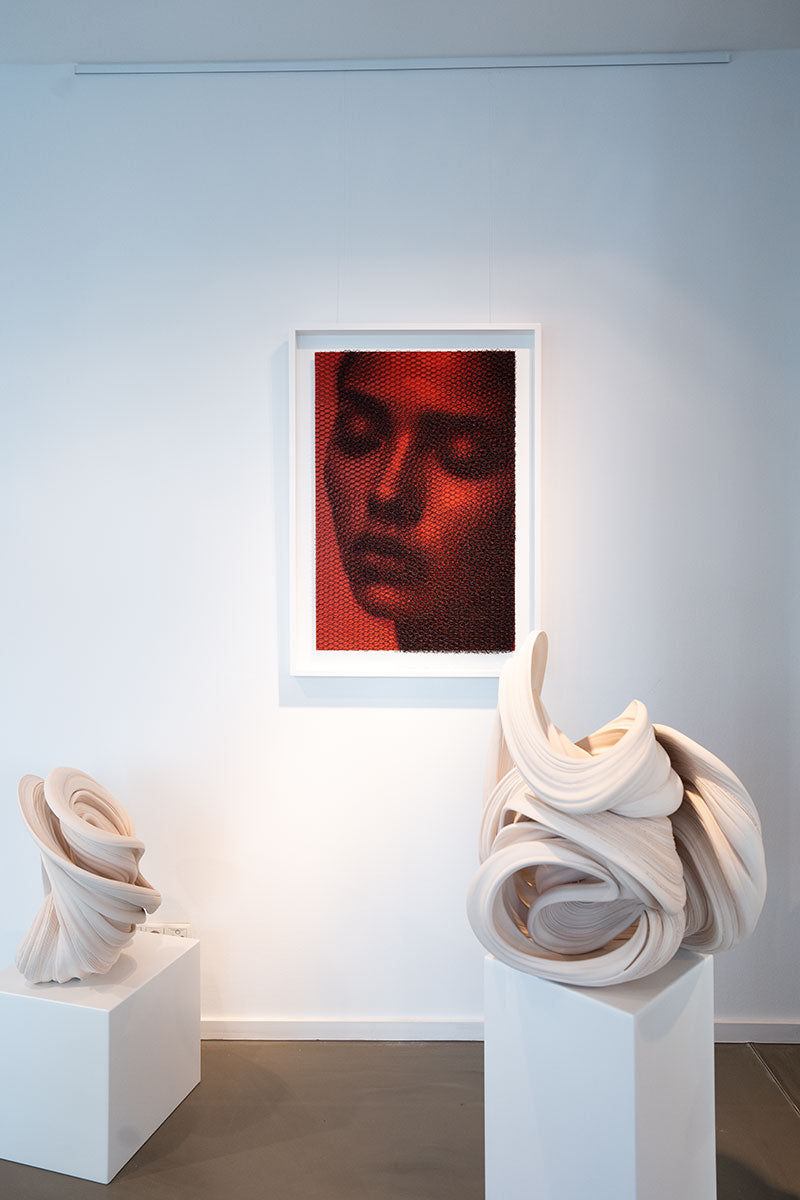 Die Arbeit „In Too Deep“ von Giorgio Tentolini bewegt sich zwischen Zeichnung, Relief und Skulptur. Aus präzise geschnittenen Schichten industriellen Drahtgewebes entstehen Bildräume, die sich...